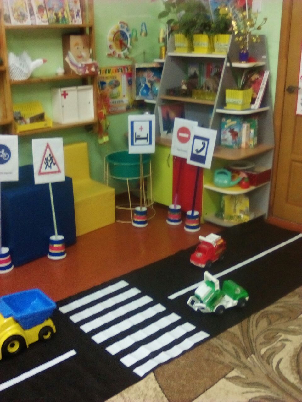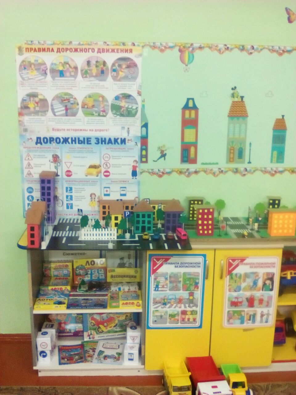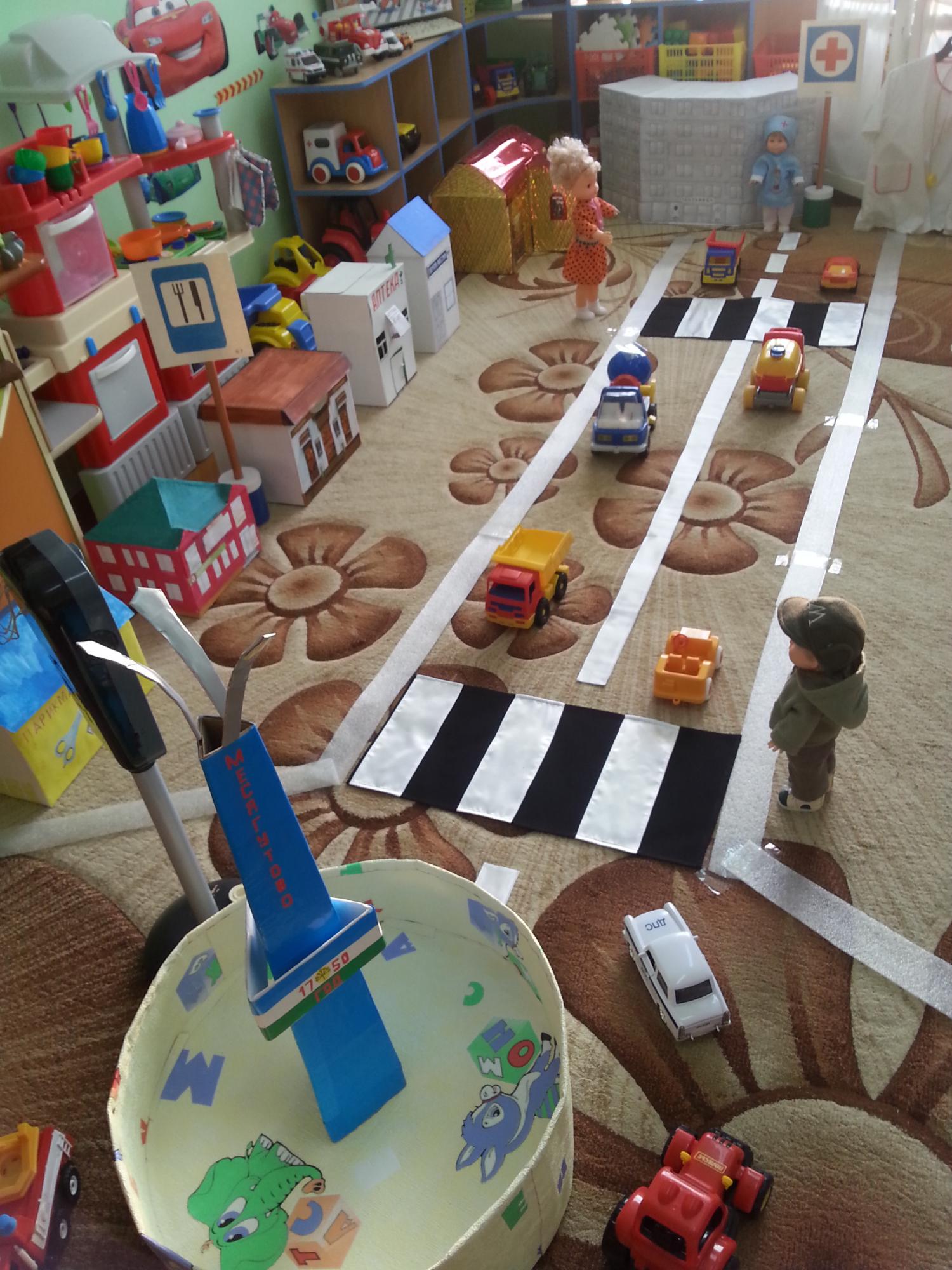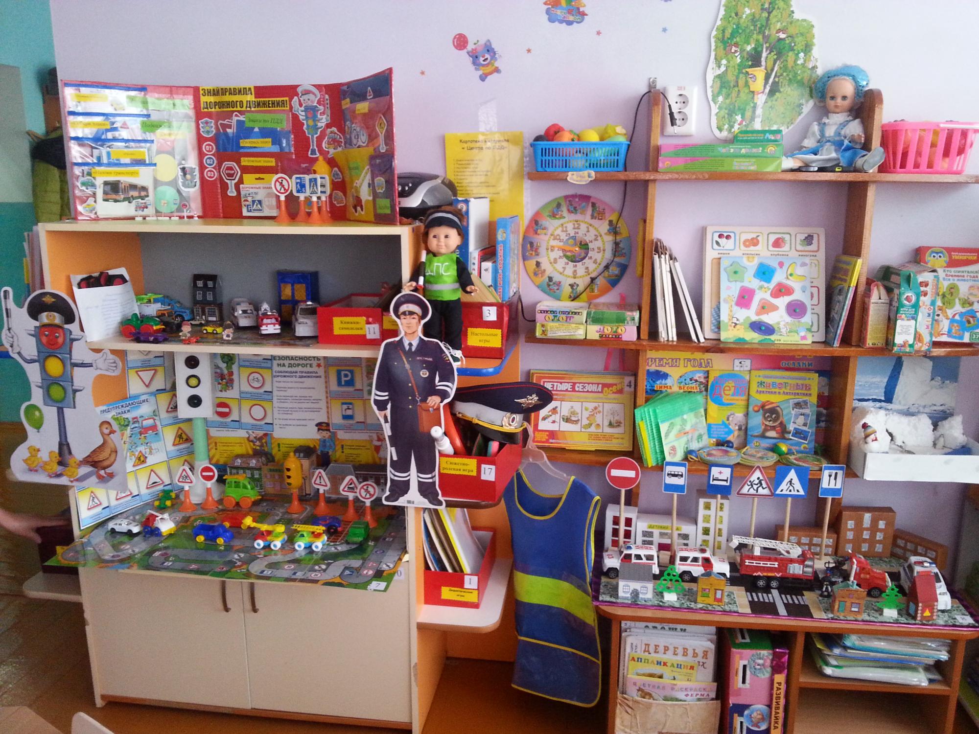 В детском саду регулярно ведется работа с воспитанниками , родителями (законными представителями) на тему "Соблюдение правил дорожной безопасности". В каждой возрастной группе имеется уголок по ПДД или сюжетно ролевые игры по ПДД, оформлена стена лестничной клетки по ПДД.Имеется площадка для проведения занятий по БДД.